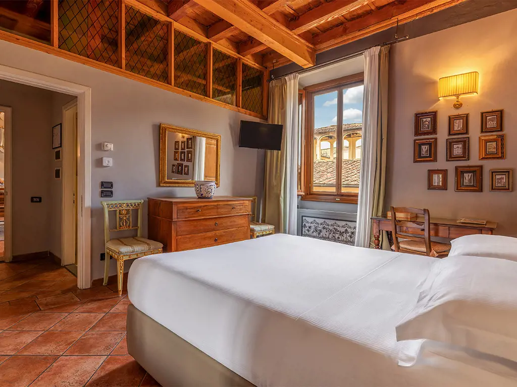 Here time seems to slow down, the wooden beamed ceiling whispers stories of an authentic past while the Tuscan terracotta floor welcomes every step and conveys the feeling of being in a timeless place.